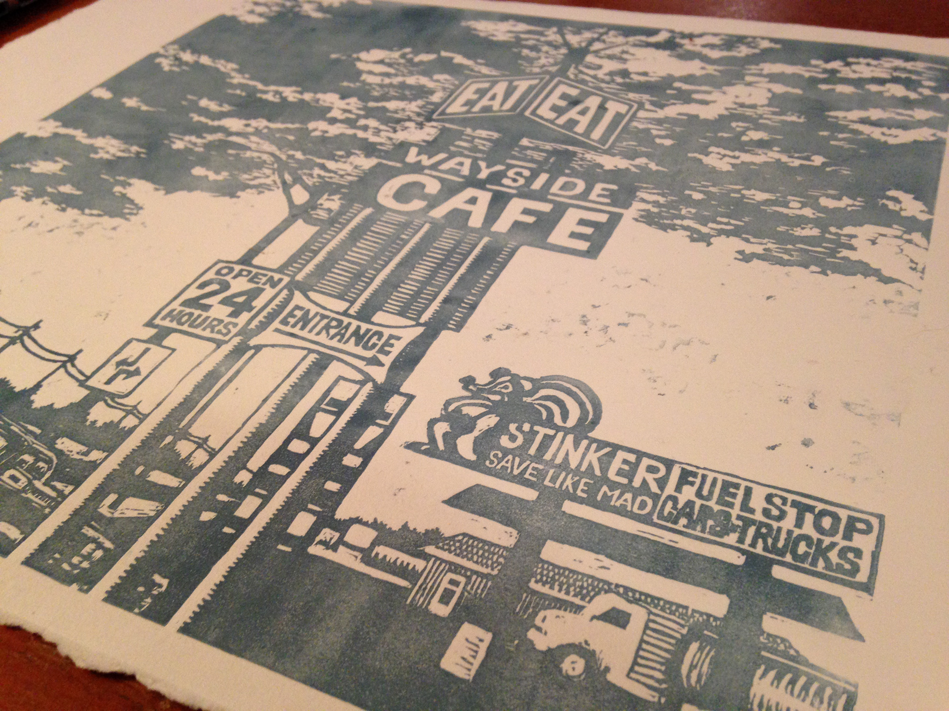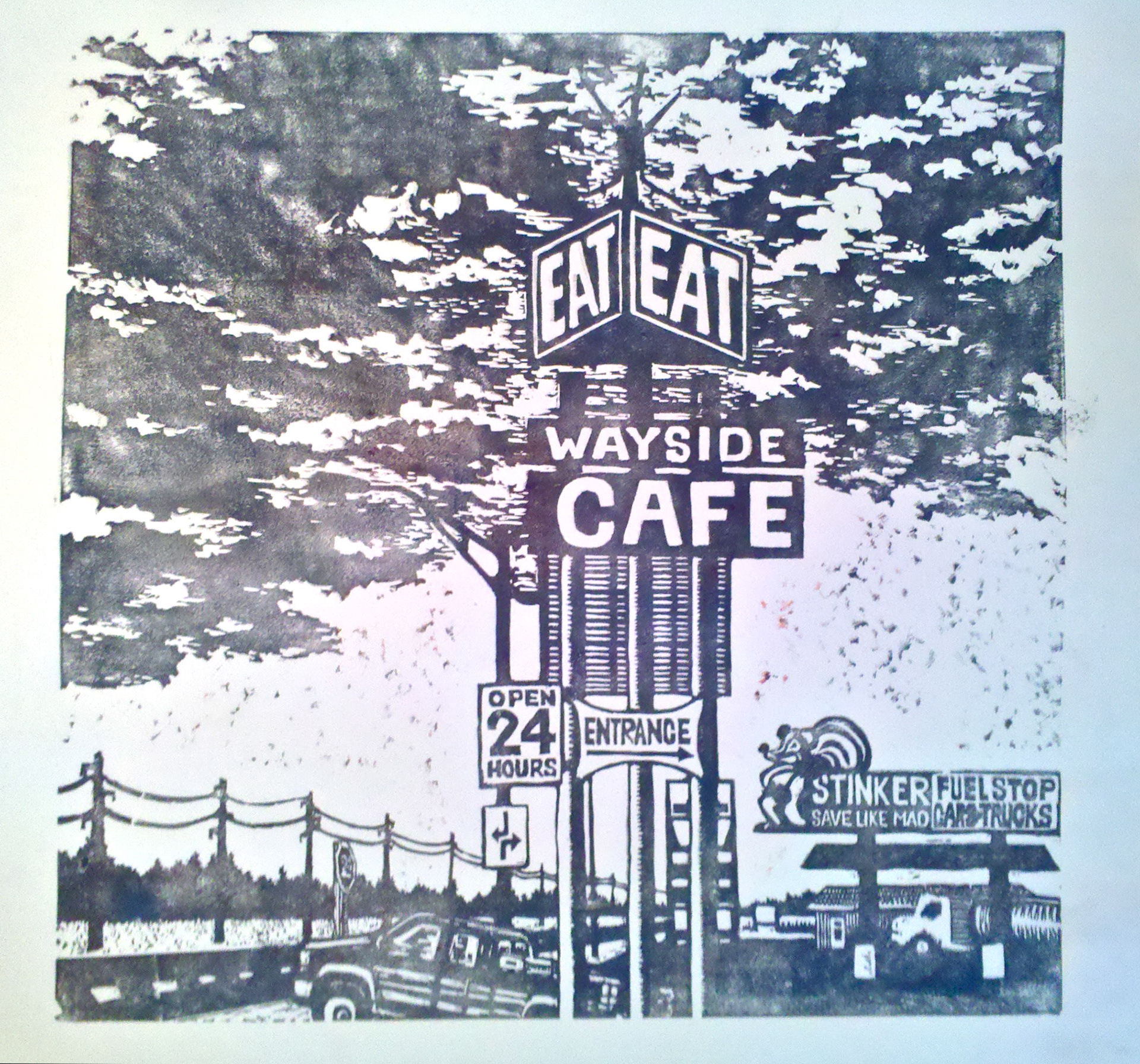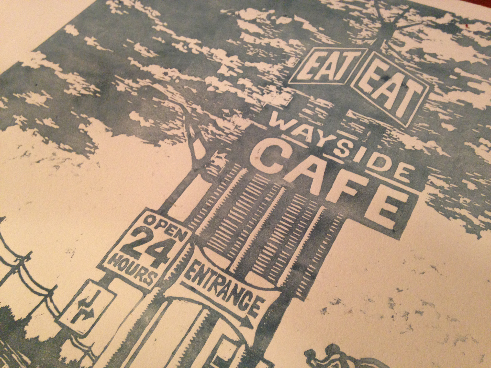 Wayside Cafe - linocut